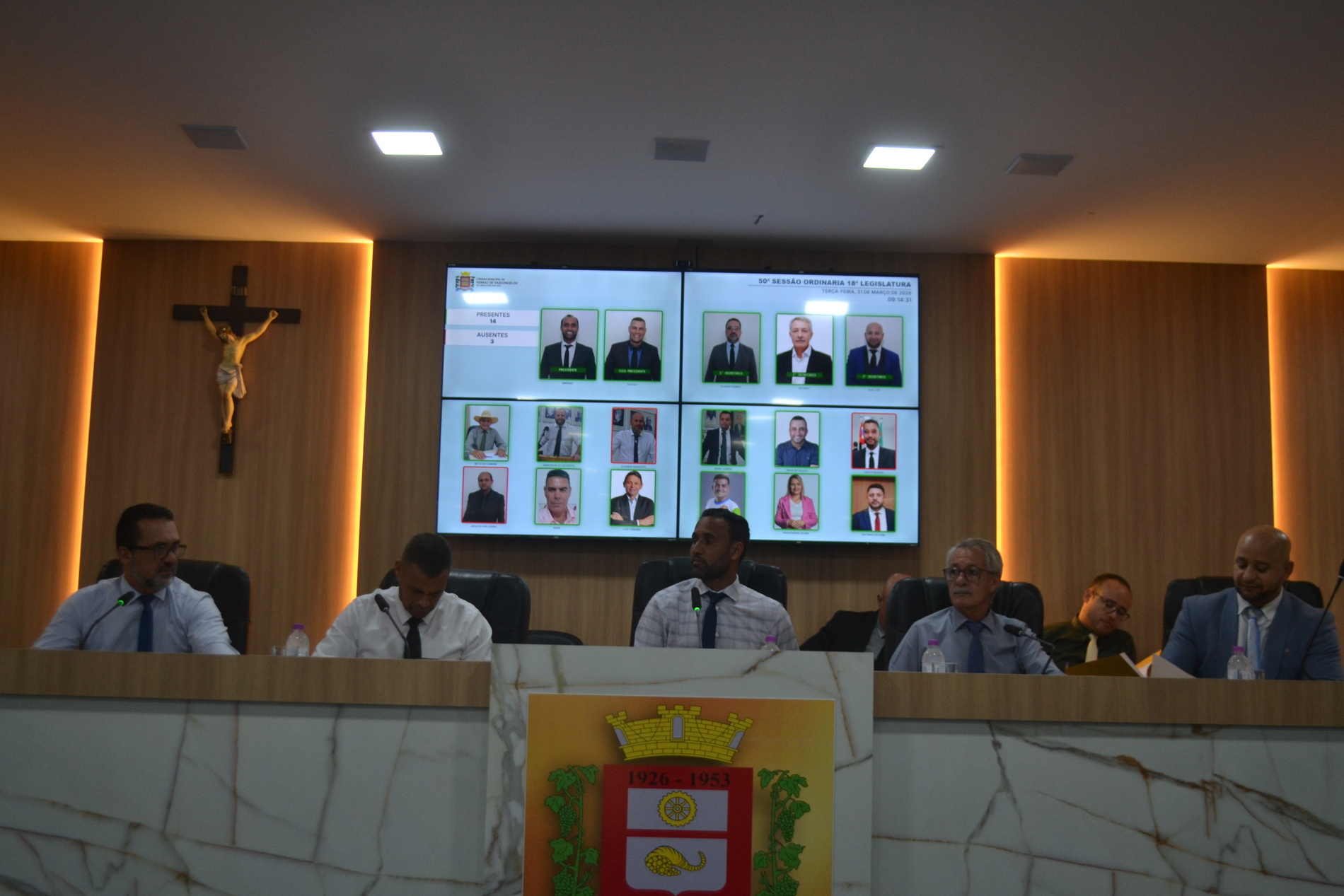 O projeto de resolução nº0027/2026 de autoria da Mesa Diretora (foto) foi aprovado em única discussão e votação na sessão ordinária desta terça-feira, dia 31. Com isso, o texto deverá ser sancionado pelo presidente do Poder Legislativo, vereador Hodirlei Martins Pereira (MDB), o Mineiro, nos próximos dias.