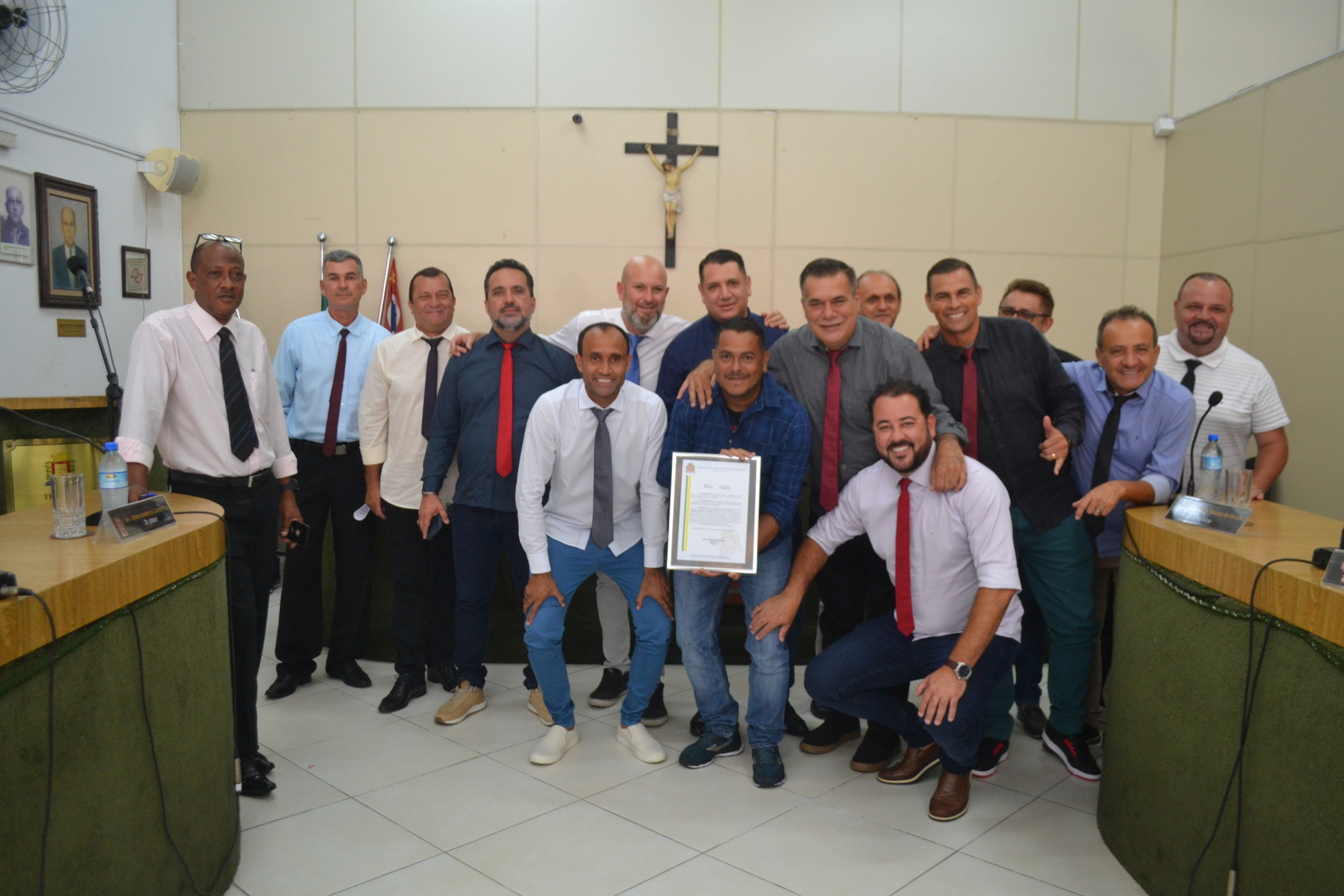 Além dele, também exaltaram a trajetória profissional de Tininho na segurança pública na cidade Alexandro Santos Alves Silva (Podemos), o Teteco, Flávio de Albuquerque Castilho (PSB), o Flávio do Depósito, Agílio Nicolas Ribeiro David (PSD), Claudio Roberto Squizato (PL) e Flávio Batista de Souza (Podemos), o Inha. Aliás, todos os parlamentares presentes (foto) assinaram o documento. Tininho agradeceu o tributo.